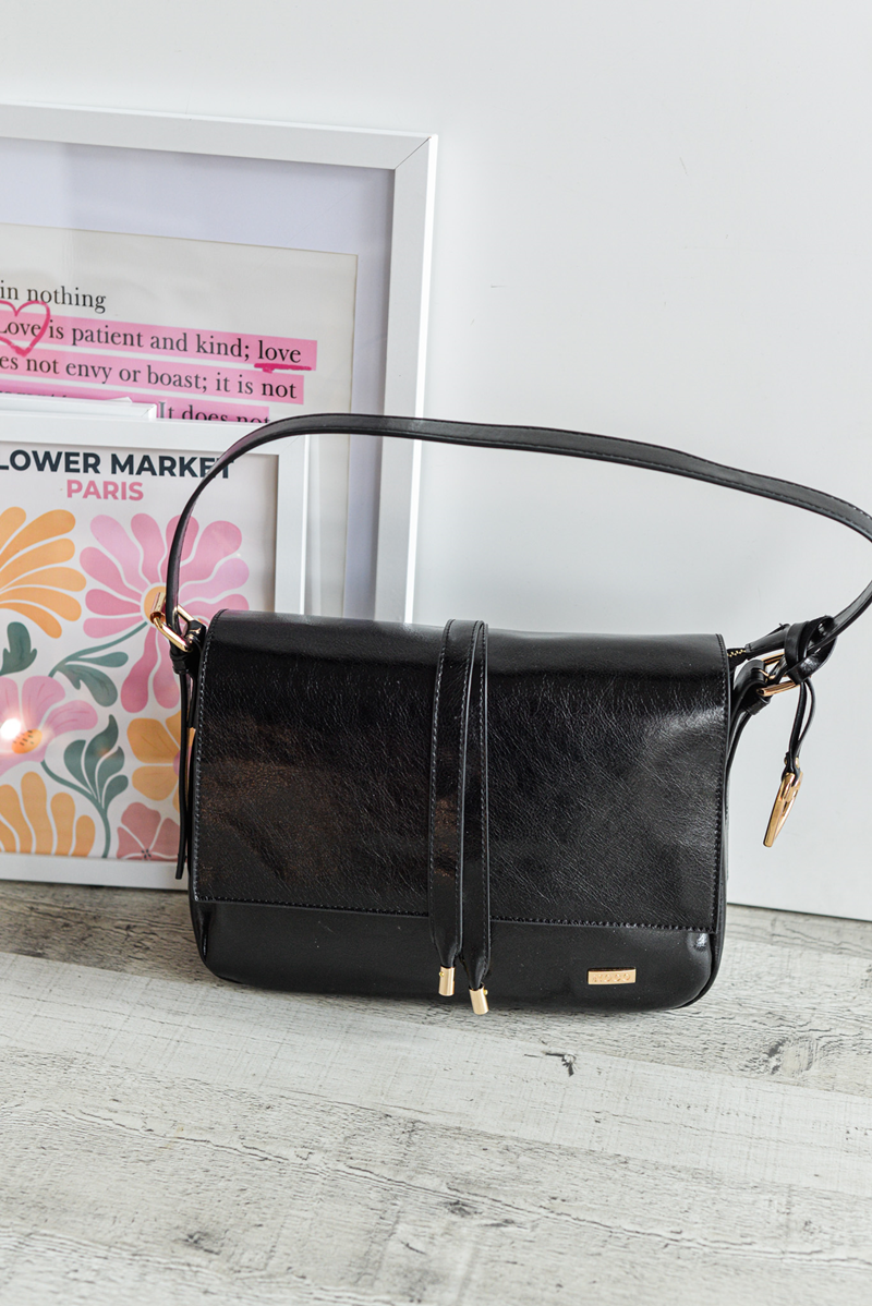 Piel vegana premium sin forro.Tiene tiras del mismo material que el cierre.Asa con enganche regulable para alargarla facilmente.