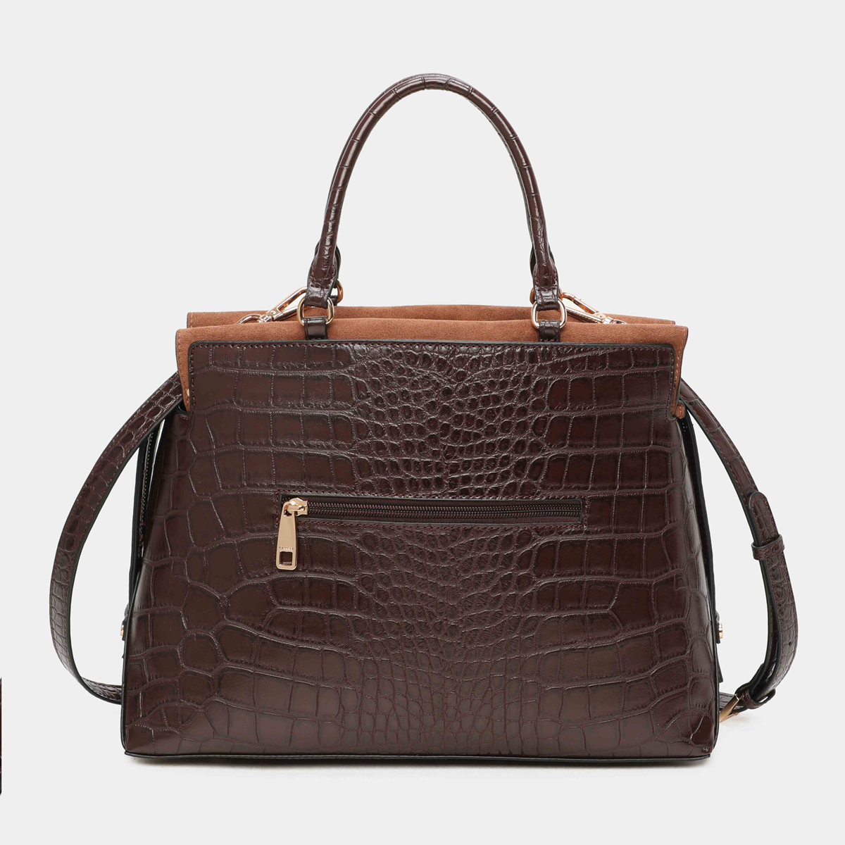 Confeccionado en coco sintetico y detalles en antelina.Asa ajustable ,dos posiciones:mano y bandolera.Interior con 3 bolsillos y uno con cremallera.Exterior con un bolsillo con cremallera.