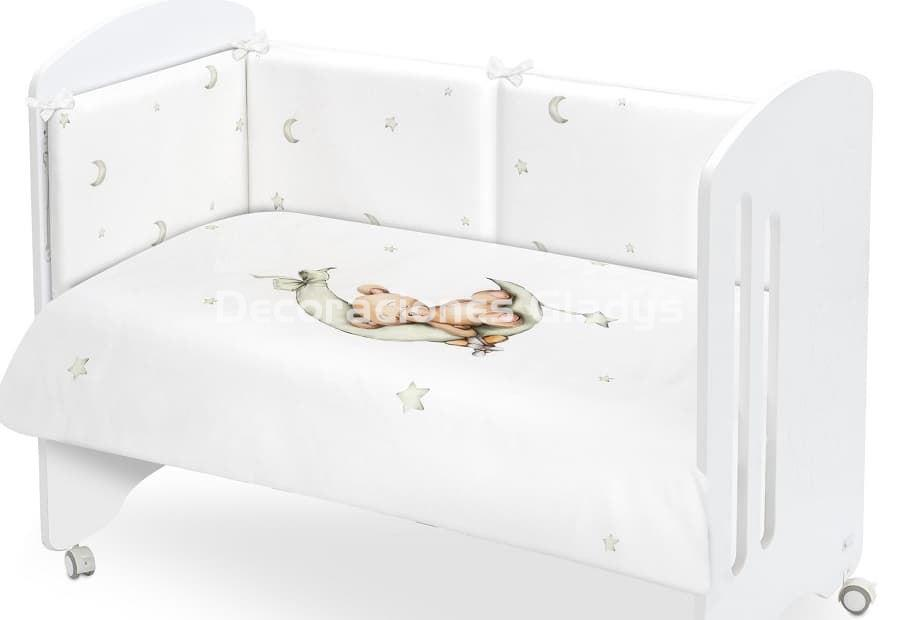 Funda nordica+chichonera+relleno oso luna verde