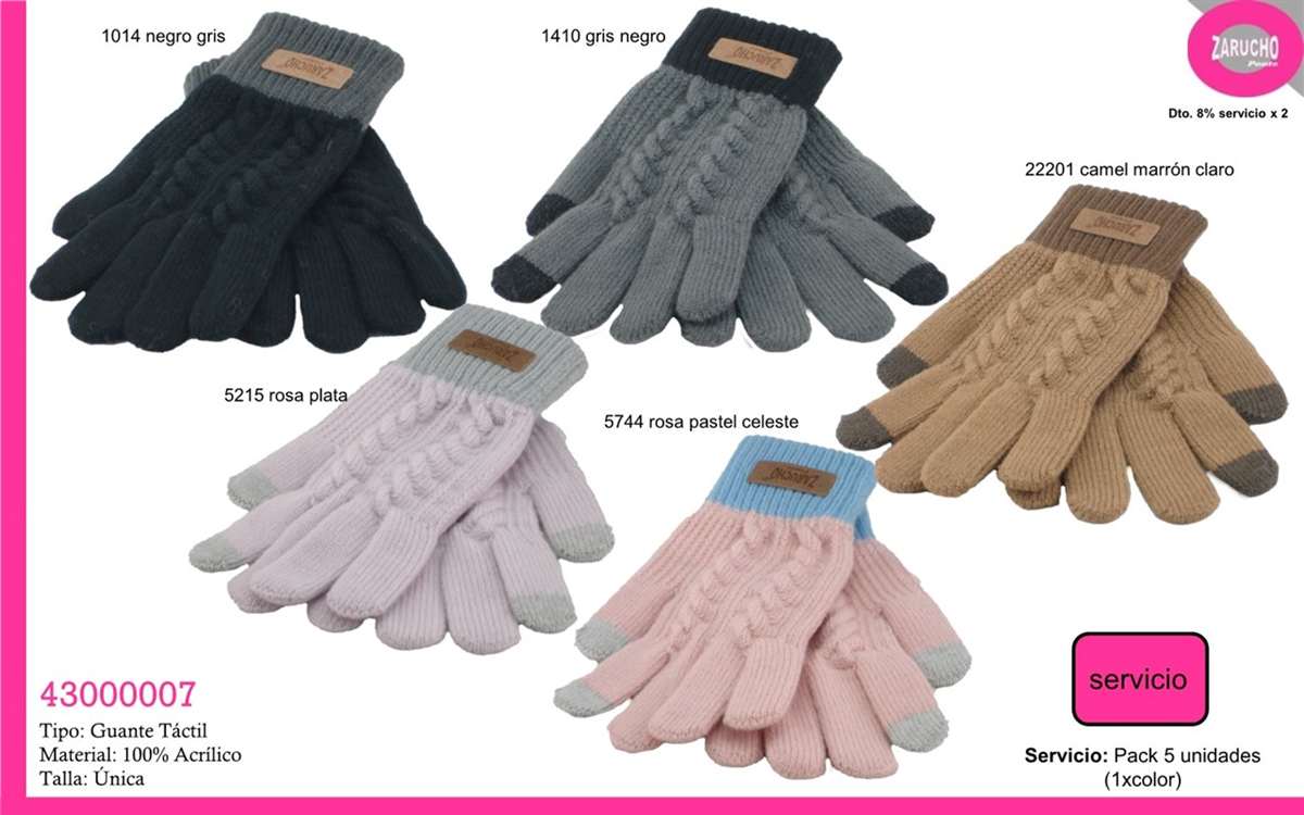 Guante liso ochos bicolor ZARUCHO colores surtidos