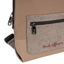 Mochila con asa de mano,cierre con cremallera, con piel vegana.Bolsillos interior y exteriores con cremallera
